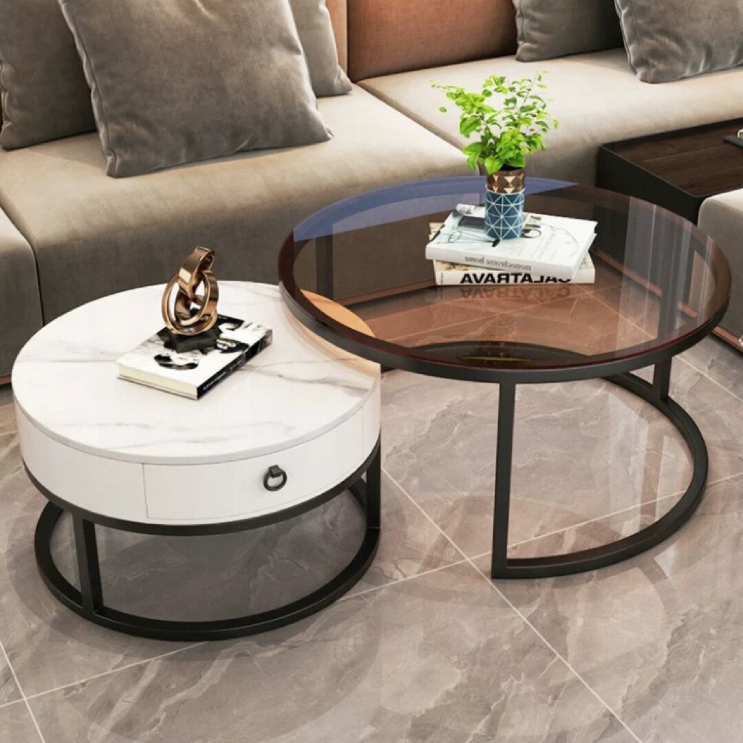 A056569高級寝室用テーブル 強化ガラスローテーブル リビングテーブル センターテーブル サイドテーブル 2点セット