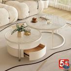 センターテーブル ローテーブル リビング おしゃれ 木目 収納 シンプル ソファテーブル 円形 幅70 80cm 高さ33cm 引き出し サイドテーブル 強化ガラス 高級感