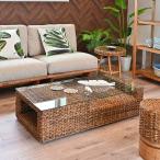 ウォーターヒヤシンス ガラスローテーブル マホガニー アジアン家具