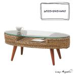 ローテーブル ガラス おしゃれ 楕円 高さ40 105cm 収納付き リゾート オーバル リビングテーブル アジアン ハワイアン