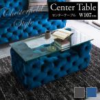 センターテーブル リビングテーブル ベロア生地 テーブル ガラステーブル ローテーブル ベルベット生地 チェスターフィールド 強化ガラス ヴィンセント