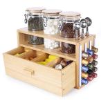 Ken's Kitchen コーヒー 豆 保存 容器 ガラス キャニスター 蓋 スプーン付き 珈琲豆 コーヒー粉 ティーバッグ収納ラック ティーバッグホルダー お茶 カトラリー
