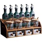 ガラス 調味料ラック ジャー 収納 おしゃれ スパイスボトルホルダー 食品保存容器セット調味料ポット缶詰ジャースパイスラック透明ガラス貯蔵容器調味料ジャーセ