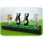 ガラス細工 ねこ 動物 インテリア雑貨 置物 ミニチュア 【ネコの楽団セット】