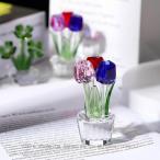 クリスタル フラワー置物 水晶花 オブジェ 枯れない花 造花 チューリップ 花飾り ガラス細工 ガラスの置物 雰囲気作り インテリア 飾り 小物 お祝い デート用
