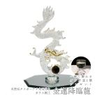 龍の置物 ガラス細工 降臨龍 20cm タイガーアイ丸玉付き 金運 風水 縁起物 おしゃれ 玄関 水盃1つおまけ 竜 八角鏡 開運グッズ ドラゴン インテリア