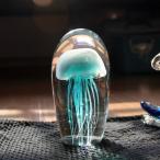 GMS01278-M 送料無料 北欧 置物 ガラス細工 かわいい きれい LED台座 リモコン付き ハンドメイド ガラスオブジェ クラゲ Mサイズ 【 GMS01278-M 】