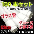 LED蛍光灯 40W形 直管 ガラスタイプ 100本セット 120cm 広角320度 グロー式工事不要 40型 色選択 飛散防止フィルム加工 120PB-X-100set