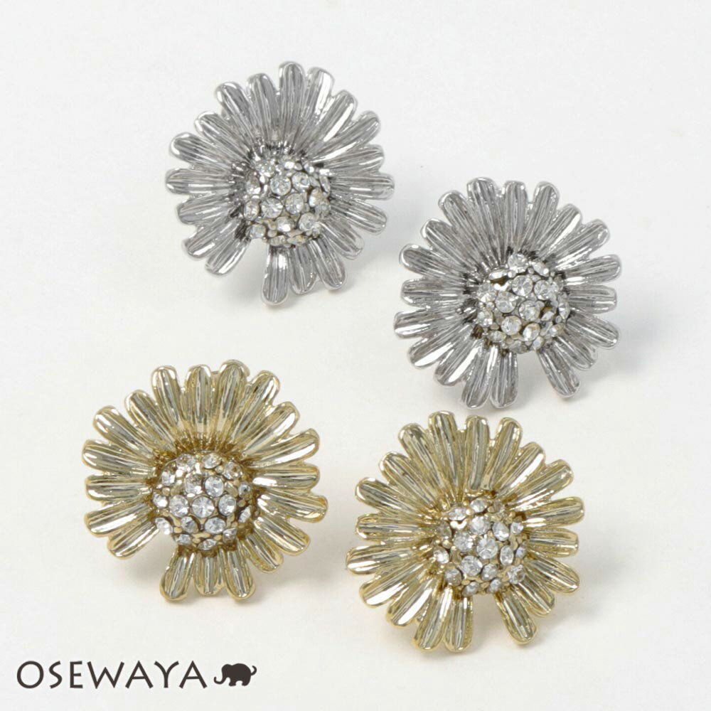 【2/19 限定4時間20%OFF】ピアス ニッケルフリー メタル パヴェ ストーン マーガレット スタッドピアス | OSEWAYA アクセサリー 金属アレルギー レディース 女性 大人 プレゼント オシャレ かわいい