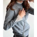 ニット セーター 袖・襟シフォンプリーツニットトップス レディース