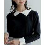 ニット セーター ポイントパール襟付きニット レディース