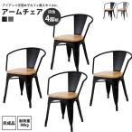 アームチェアー 4脚セット おしゃれ 肘掛け付き インダストリアル ダイニング ワーク ガレージ 天然木 スチール PC-263 BK/SV x4個 アームチェア 4脚セット