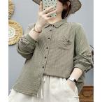 シャツブラウス レディース 丸襟 ガーゼ シャツ ブラウス 長袖 トップス ギャザー カジュアル 無地 チェック 切り替え 羽織り ダブルガーゼ
