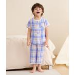 パジャマ おなか安心ボタン付き半袖前開きガーゼパジャマ(先染めチェック) キッズ 子供 男の子 女の子