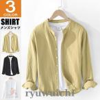 カジュアルシャツ メンズ シャツ 長袖 コットン 綿100% ガーゼ バンドカラー 無地 カジュアル 春秋 トップス