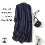 シャツワンピース ガーゼ レディース ロングワンピース 綿麻ワンピ 長袖 七分袖 シンプル 体型カバー マキシ丈 ゆるっと ミモレ 無地 春 夏 カジュアル 綿麻 ナ
