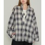 ブラウス シャツ ガーゼシアー チェック オンブレチェック ワイド シャツ レディース