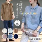 ガーゼシャツ ダブルガーゼ 綿100% シャツブラウス レディース 春 ガーゼ シャツ シャツ ブラウス 長袖 トップス 秋 綿 カジュアル