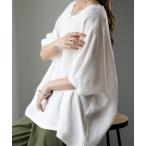 ブラウス シャツ 楊柳Wガーゼギャザースリーブリブプルオーバー レディース
