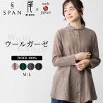 メリノウール シャツ ブラウス 日本製 ウール100% ウールガーゼ マルエリ 襟付き レギュラーカラー 長袖 レディース トップス