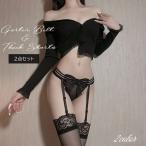 ガーターストッキング ニーハイストッキング ニーハイソックス ガーターベルト 2点セット レディース 女性 インナー 下着 アンダーウェア レース 薄