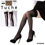 (NEW) Tuche ガーターフリー ストッキング 伝線しにくい 太もも丈 (ブラック 黒・ヌードベージュ)(日本製) グンゼ ガーターストッキング レディース