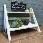 エイジング調アンティークウッド ダメージ加工 2段ミニラック【花台】【ベランダ】【フラワースタンド】【ガーデニング雑貨】