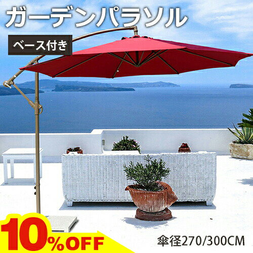 10%OFF!11/20~27★パラソル スタンドパラソルセット 270/300cm 土台付き 自立式 大型 ガーデン ハンギングパラソル 遮光 熱中症対策 UV 99.9%カット カフェ風 ホテル 日傘 ガーデニング 屋外用 店舗 ベース 庭 日よけ 日除け