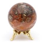 パイライト イン ガーデンクォーツ 丸玉 31mm 台座付き 庭園水晶 黄鉄鉱 天然石 Pyrite 1点もの 敬老の日 贈り物 プレゼント ギフト 贈り物