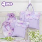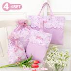 学童 布バッグ & 巾着 4点セット 野いちご 小花いちご柄 レッスンバッグ シューズバッグ 巾着Sサイズ 巾着Mサイズ 女の子 小学校 通園 通学
