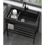 黒 流し台 ガーデンシンク キッチンシンク 置き場付き シングル 屋外用 錆びず ステンレス製簡易排水シンク 屋内、ガレージ用大容量自立型シンク 業務用厨房流し