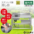 流し台 ステンレス製 蛇口水栓付き 幅120cm【期間限定価格】 屋外 キッチン ガーデンシンク 錆びず 簡単取付 工場 農園でも (作業台付HI-125L/R)