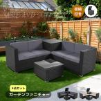 【全ストア5%OFFクーポン利用!】ガーデンファニチャー 4点セット 収納付き ガーデンテーブル ガーデンソファ クッション付き ラタン調 家具 アウトドア
