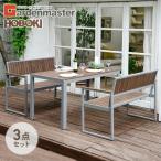 ウッド調 ガーデンファニチャー テーブル&チェアセット 4人掛け ガーデンテーブル チェア 3点 セット(テーブル×1、ベンチ×2) [GTC06Q]