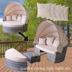 ソファ オットマン テーブル セット 「 ガーデンファニチャー 3点セット ムーア(Moor)」 屋外家具 雨ざらし 水洗い ラタン調 樹脂製 3人用 4人用