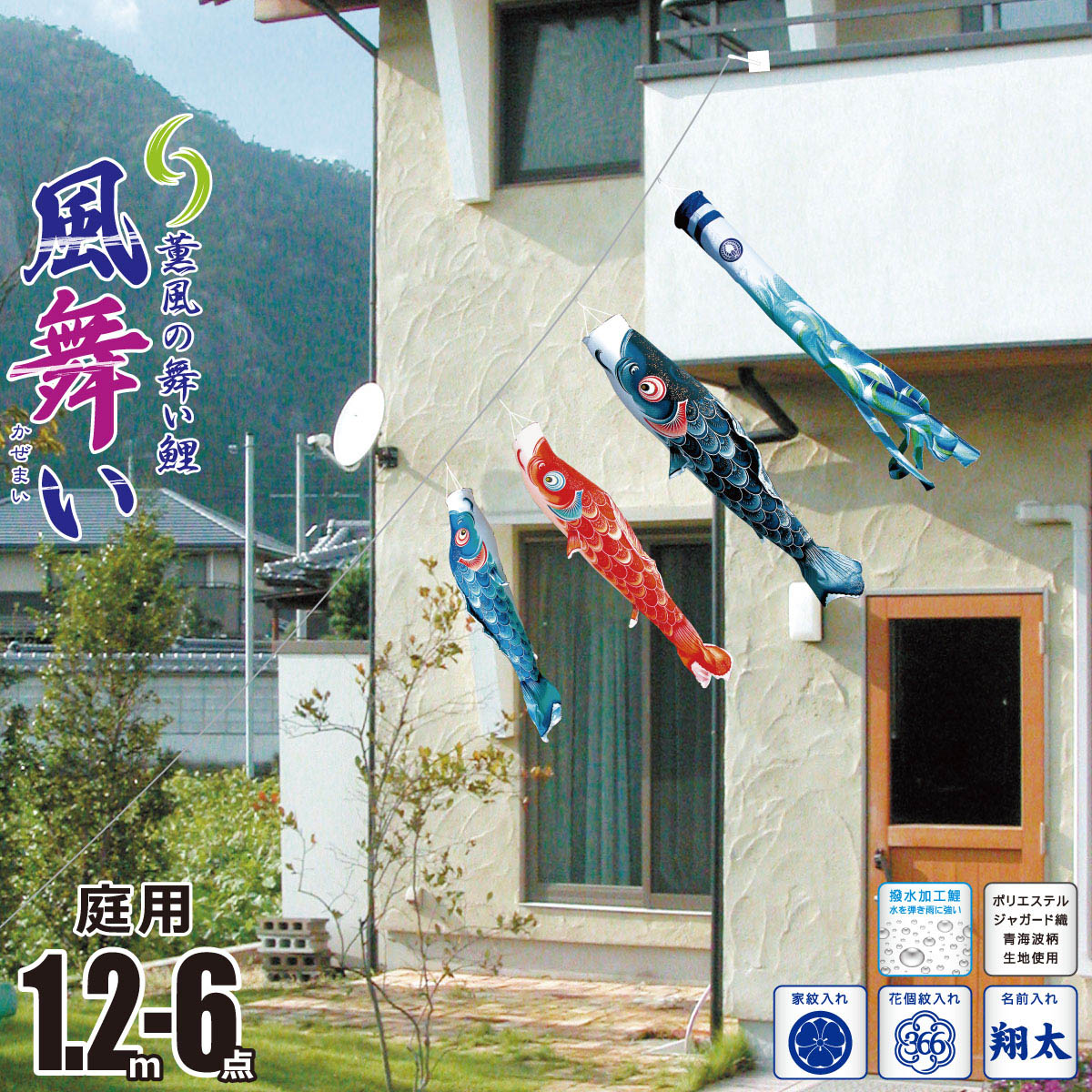 こいのぼり にわデコ 風舞い 1.2m 6点 にわデコセット KOT-ND-410-173 ベランダ 庭用 ロープ式 ガーランド 鯉のぼり ポール不要 庭デコ 鯉3匹 徳永鯉のぼり カタログ 純正品 ポリエステル 撥水加工 家紋/花個紋/名前入れ対応 日本製
