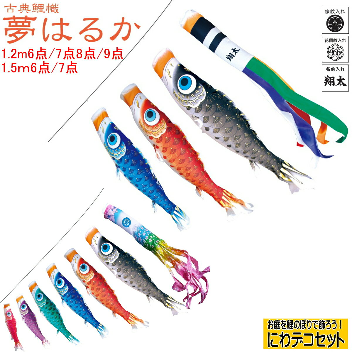 【こいのぼり】夢はるか鯉にわデコセット1.2m6点/7点/8点/9点-1.5m6点/7点にわでこ/お庭こいのぼり/鯉のぼりガーランドこいのぼり/吊るすこいのぼり/庭用