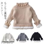カットソー 長袖 キッズ ベビー ハイネック トップス 厚手 裏起毛 裏フリース 女の子 インナー 肌着 フリル 暖かい 防寒 ニットセーター ニットソー 子供服