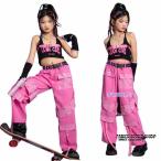 韓国 jazz ブラック Tシャツ カーゴパンツ キッズ ダンス衣装 セットアップ 上下セット おしゃれ 女の子 かっこいい かわいい へそ出し トップス カジュア