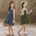 子供服 ワンピース キッズ 子供ドレス dress 子供服 ジュニア 女の子 夏 キャミソール 膝丈 ノースリーブ 無地 カジュアル おしゃれ 可愛い 通学着 新品