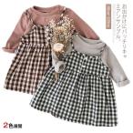 ベビー服 2点セット 赤ちゃん キッズ 長袖プルオーバー×キャミワンピ 長袖トップス キャミソールワンピース アンサンブル チュニック チェ