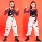 女の子ダンス衣装 子供服 ダンスウェア ストリートダンス衣装 ヒップホップ 韓国子供 上下セット トップス キャミソール カーゴパンツ ジャズダンス キッズ ジュ