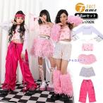 ピンク セットアップ キッズ ダンス衣装 桃色 キャミソール カーゴパンツ もこもこパンツ スパンコールパンツ トップス ヒップホップ セットアップ 長袖 HIPHOP