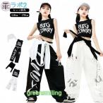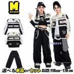 英字 シャツ 黒 白 長袖 キャミソール パンツ ダボパン ロンt ボダン キッズダンス衣装 セットアップ ダンスウェア ステージ衣装 チアガール ヒップホップ 子供
