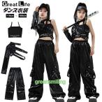 キッズ ダンス衣装 女の子 韓国風 キャミソール トップス パンツ 2点セット 黒ダンス jazz ジャズダンス ガールズ hiphop k-pop ァッション セットアップ ダンス