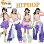 キッズ ダンス衣装 ティアードスカート パープル ピンク カーゴパンツ スカート キャミソール セットアップ 子供服 ジャズ パンツ k-pop ヒップホップ 応援団 演