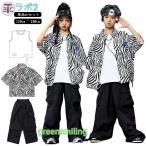 柄シャツ ゼブラ柄 キッズダンス衣装 セットアップ ヒップホップ ゆるシャツ カーゴパンツ 黒 キャミソール k-pop 衣装 男の子 女の子 キッズダンス K-pop 衣装