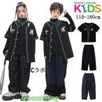 黒 ベースボールシャツ キッズ ダンス衣装 セットアップ 男の子 女の子 チア チアガール ヒップホップ hiphop 子供 半袖シャツ ズボン パンツ かっこいい 単品