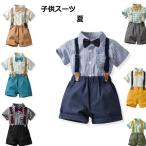 セットアップ 入学式 入園式 キッズスーツ 半袖シャツ+サスペンダー+ネクタイ+チェック柄パンツ シャツ 4点セット キッズ 子供服 男の子