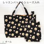 【レッスンバッグ&シューズ入れ】2点セット ハンドメイド オーム柄 キッズ 子供 手提げ 幼稚園 小学校 入学準備 ポケット マグネットホック シューズバッグ